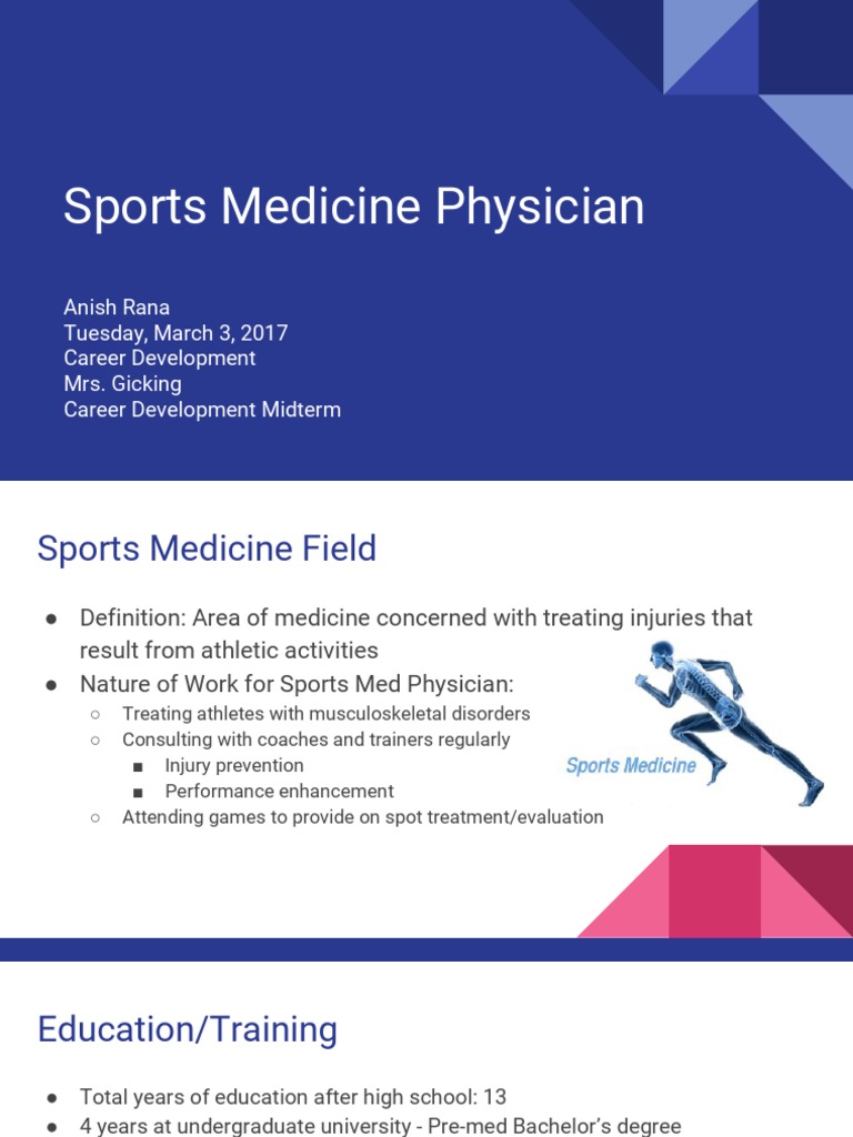 Sports medicine, also known as sport and exercise medicine (sem), is a branch of medicine that deals with physical fitness and the treatment and prevention. Good or correct posture is one in which the body is so balanced as to produce the least fatigue. Definition of a catastrophic incident: Dietician, md medical consultant, orthopedic, neuropathy sports medicine doctors concentrate in areas surrounding treatment of injuries resulting out of athletic activities. Sports medicine is a branch of medicine that deals with physical fitness and the treatment and prevention of injuries related to sports and exercise.